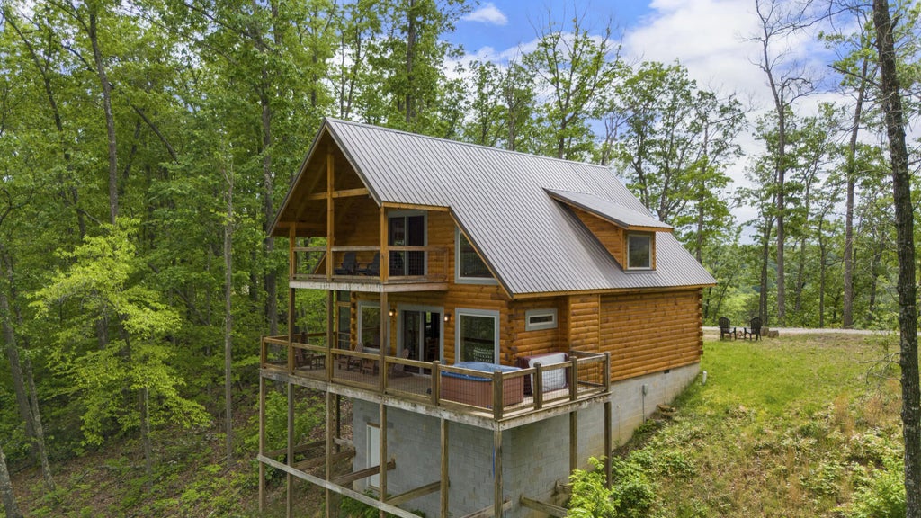 Sheltowee is a 3 bedroom, 2 bath cabin situated along a cliff-line overlooking the Daniel Boone National Forest and the Red River Gorge. Custom counters, real wood accents throughout, a stone fireplace, screened in sitting area and two covered decks overlooking the Gorge make this a unique and exciting getaway or forever home. The kitchen is fully equipped and the living room is set up so you can comfortably enjoy the fireplace and flat screen tv, while still enjoying cliff line views.
