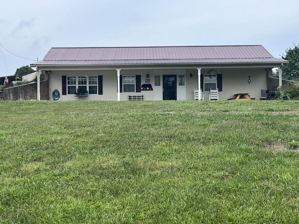 HUGE PRICE REDUCTION! MOTIVATED SELLER! There's plenty of charm in this adorable, 3 bedroom, 2 1/2 bath, earth-sheltered home in a country setting. The cozy, covered front porch is perfect for enjoying the mountain views. Open concept kitchen and living area with real hardwood floors. Two of the bedrooms each have an attached full bath with one having a huge, tiled walk-in shower. Another bedroom with beautiful tiled flooring, is currently used as a large dining area. HUGE laundry/utility room with 1/2 bath and tiled flooring. Also included is a charming , 18 x15 tiny house (no bathroom), perfect for a she-shed or hobby room. A large, approximately 60 x 45 work garage with gas heat and a half bath sits just to the back side of the home. Can serve a multitude of purposes but has been used for car restoration and mechanics and includes a car lift and air compressor. Another 14x16 storage building is also included. This property has a lot to offer everyone in the family and may be just what you're looking for!
