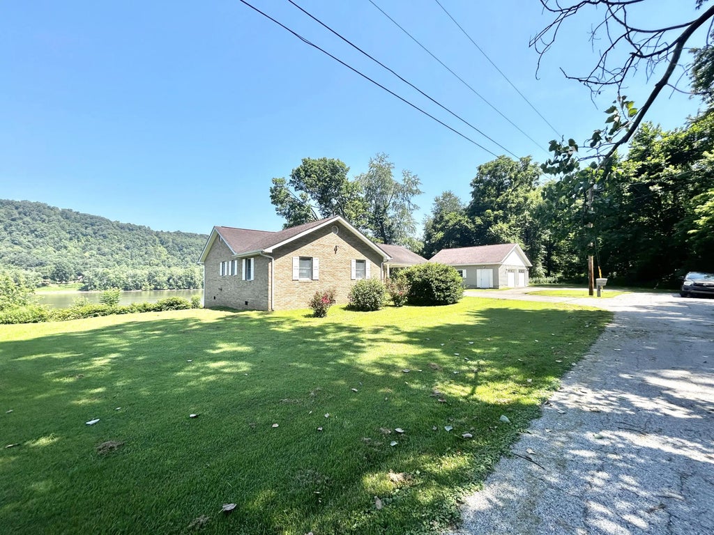 Exceptional opportunity to own a lovely ranch-style brick home with direct Ohio River frontage in the desirable River Estates Subdivision. Located in the Black Oak area just 5 miles east of Vanceburg, this charming property sits on a generous 0.63-acre lot and is not in a flood zone. The 1,500 sq ft home features 2 bedrooms and 2 full bathrooms, with large windows throughout the main living area that showcase magnificent river views, creating a perpetual vacation atmosphere. A spacious back deck with convenient rear access provides an ideal outdoor living space with unobstructed views of the Ohio River, perfect for entertaining or peaceful relaxation. The kitchen and separate dining area offer tranquil river vistas. Practical amenities include attached carport, detached 2.5 car garage with automatic roll-up doors and a custom oil changing station, ideal for automotive enthusiasts, with concrete driveway. Don't miss your chance to own this beautiful waterfront property in the highly sought-after River Estates Subdivision.20 min to Portsmouth Oh, 35 min to Maysville Ky. Schedule your private showing today!