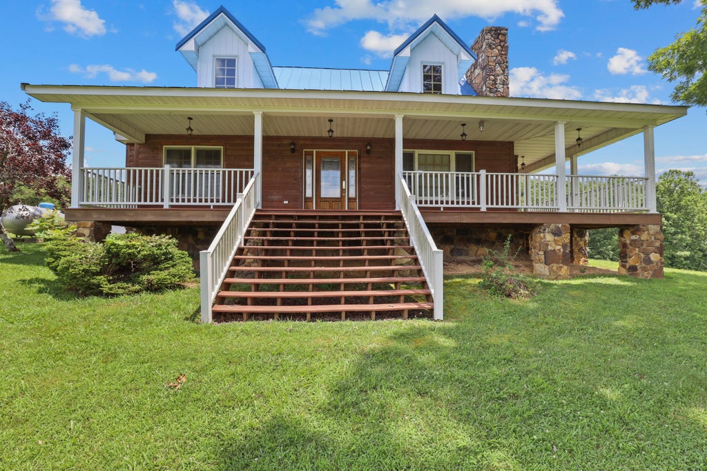 Perched atop a scenic hill in the peaceful Tyner community of Jackson County, this inviting 2 bedroom, 2 bathroom cabin offers an exceptional blend of comfort, functionality, country living, and natural beauty. Set on 20.14 mostly fenced acres, the home showcases panoramic, picturesque views of the surrounding landscape that can be enjoyed year-round. Conveniently located just 2.8 miles (about 5 minutes) from KY-30, this property offers the tranquility of country living while remaining accessible; only 20.7 miles (25 minutes) from London and 35.4 miles (52 minutes) from Berea, making it ideal for commuting, shopping, or enjoying nearby amenities. Step onto the expansive 7'x44' wrap-around covered porch, which stretches across the front, side, and back of the home—an ideal space to unwind, entertain, or simply soak in the serenity. Inside, the warm, cabin-style ambiance welcomes you with rich wood-paneled walls and ceilings, gleaming hardwood floors, and a striking handcrafted balustrade that frames the staircase and upper loft.. The main level seamlessly connects the living room, dining area, and kitchen, offering an open and functional layout perfect for daily living or hosting guests. The laundry closet is centrally located and adds convenience, while the spacious primary suite provides a private retreat with plush carpet in the bedroom, tiled flooring in the bathroom, a double vanity, and a custom tile shower. Upstairs, you'll discover the second bedroom, a full bathroom, and a versatile loft area that can function as a third bedroom, office, or bonus space and is complete with an open view of the living area below. Outdoors, this property truly shines. Explore trails that weave through mature hardwoods, ideal for hiking, hunting, or ATV rides. Wildlife, including deer and turkey, roam freely; a trophy buck was even spotted on the day the property was listed! A stocked .5 acre pond teems with bass, bluegill, and catfish while the above-ground pool offers a refreshing escape after a long day's work around the house. Additional features include a storage building and a 40'x70' structure that encompasses a 2 bay garage with gravel floor and a large covered equipment area that would be perfect for storing tractors, trailers, trucks, and recreational vehicles. Whether you're looking to live, farm, hunt, or simply retreat from the bustle of everyday life, this property delivers peace, practicality, and panoramic views in one rare package.