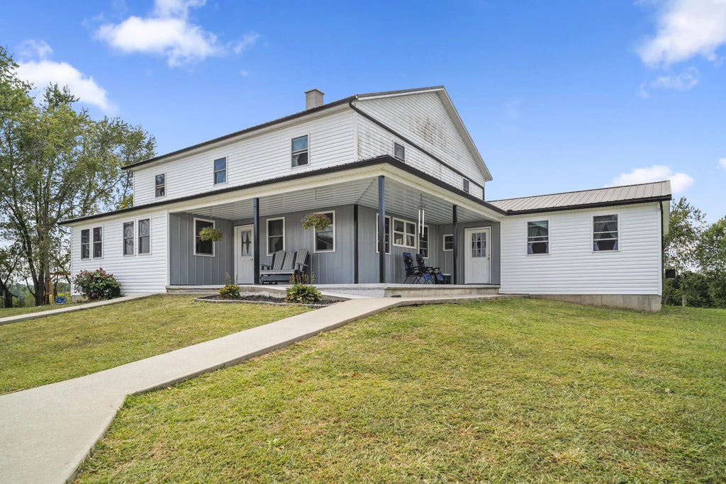 Perched above rolling countryside, this beautiful two-story home offers 2,088 sq ft on the first floor, 1,463 sq ft upstairs, and a 1,406 sq ft basement. The property includes a 3,410 sq ft barn with 8 stables and an unfinished 1,834 sq ft event space, perfect for gatherings, equestrian pursuits, or future development. From this vantage point, enjoy sweeping valley views that stretch for miles. With utilities accessible, this property is ready for modern upgrades or could easily serve as a peaceful off-grid retreat.