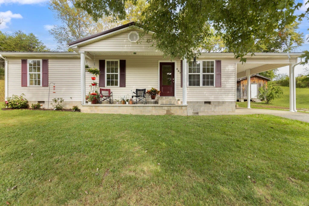 This beautifully renovated 2-bedroom, 1-bath home (with potential for a 3rd bedroom) offers the perfect blend of style, comfort, and convenience. Step inside to find brand-new kitchen cabinets, countertops, and appliances, fresh paint throughout, and durable LVP flooring. The expanded bathroom is a true retreat, featuring a fully tiled shower, tile flooring, and a freestanding soaking tub for ultimate relaxation. Outside, enjoy the fresh landscaping, covered porch, and attached carport, all sitting on nearly an acre in a peaceful setting — just 2 miles from Highway 30. You'll love the location: 30 minutes to Natural Bridge State Park, 30 minutes to London, and just 1 hour to Richmond — giving you easy access to outdoor adventures, shopping, and dining. This single-level, turnkey home is move-in ready and waiting for its new owner. Don't miss your chance to make it yours — schedule your private showing today!
